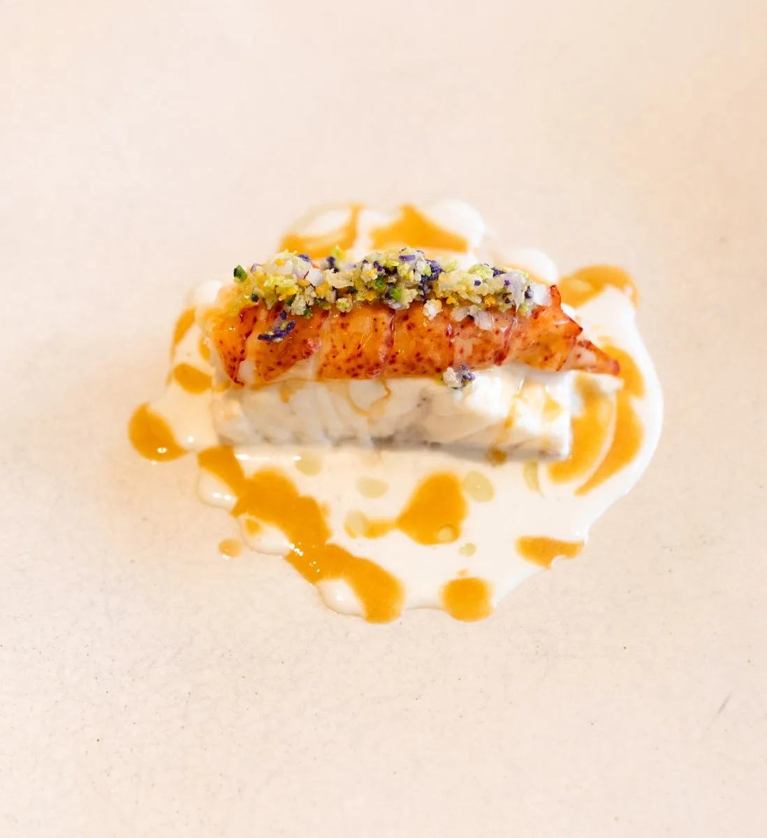 Llom de llobarro amb salsa cremosa i el llobregant amb suc del seu coral