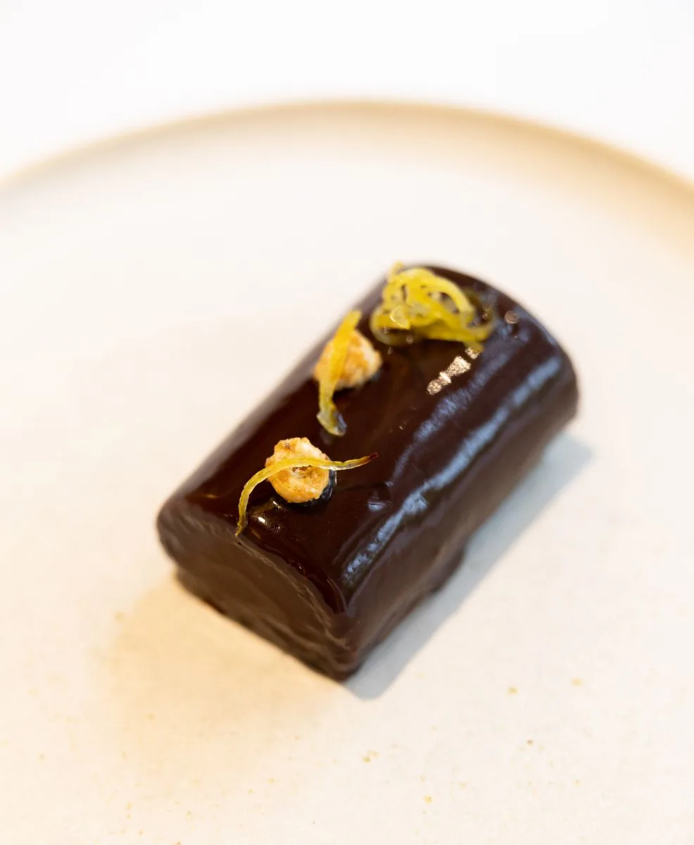 Tronc de Nadal amb torró, neula cruixent i crema de llimona
